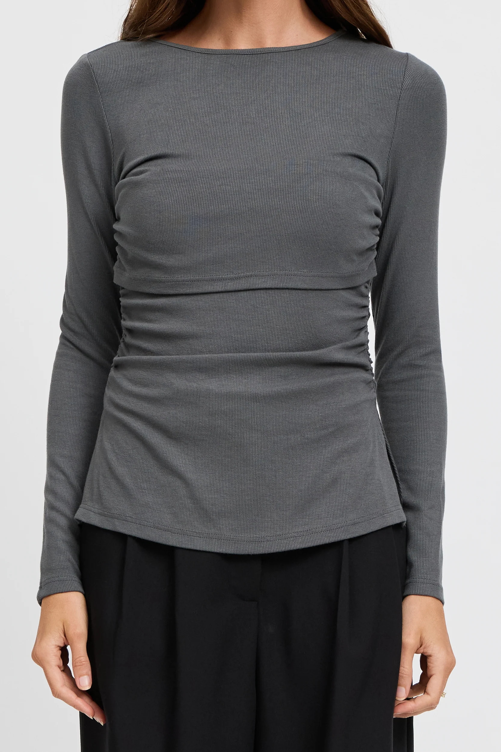 Ari Ribbed Long Sleeve Top - Charcoal