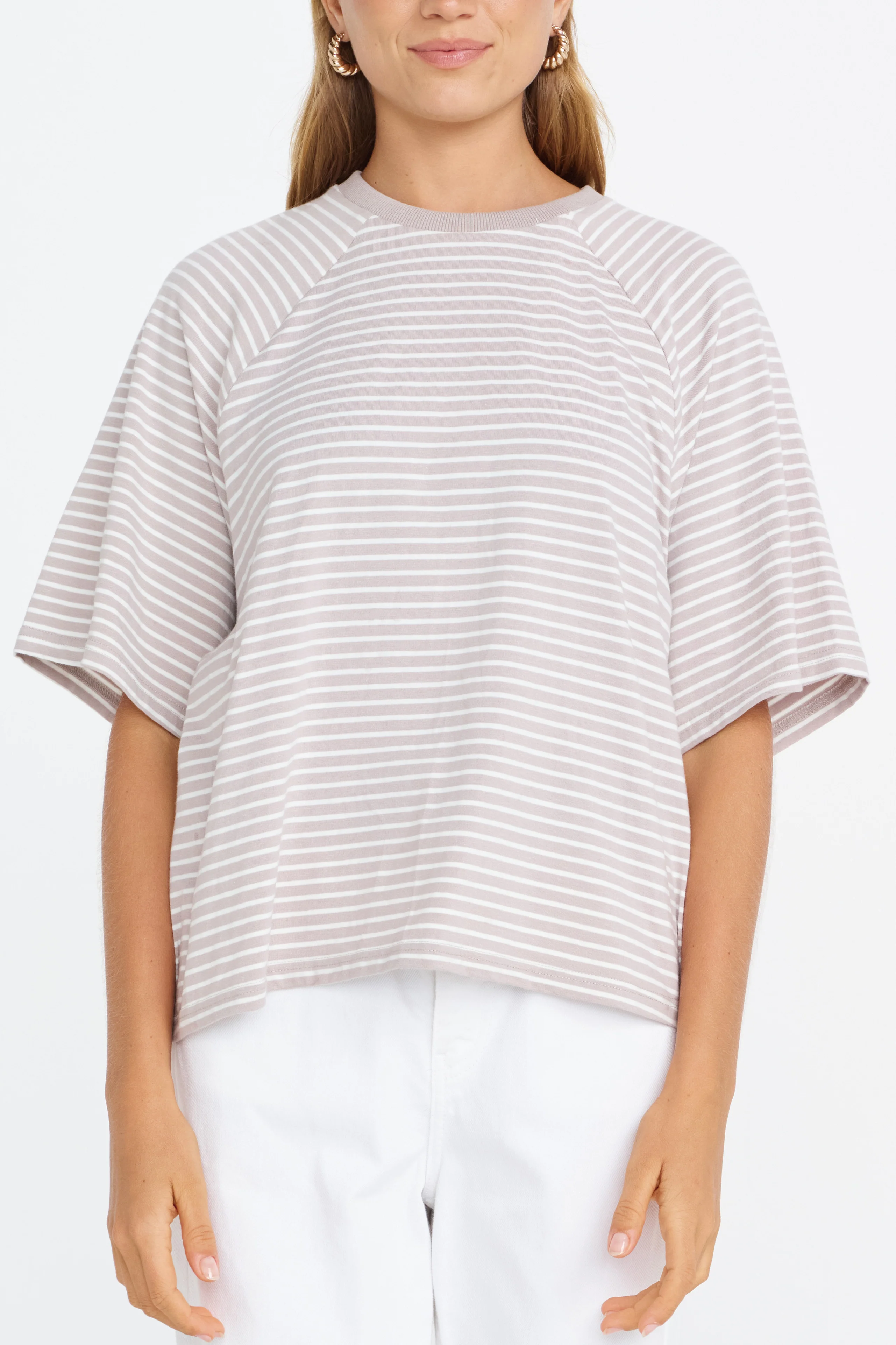 Introducing the Classique Stripe Box-Cut Tee - Stone / White to your wardrobe rotation.Ā