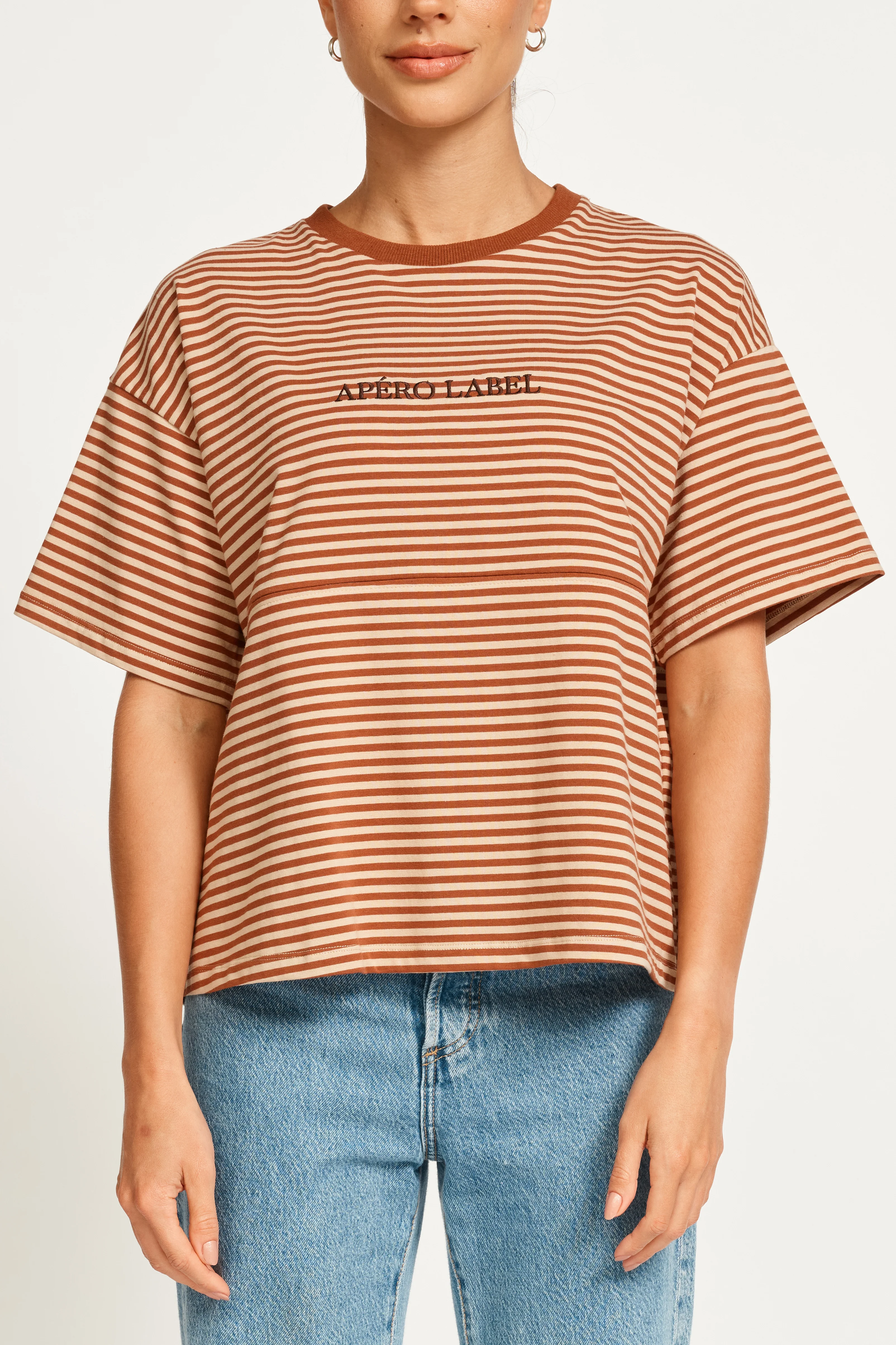 Era Drop-Shoulder Cropped Tee - Brown / Tan Stripe