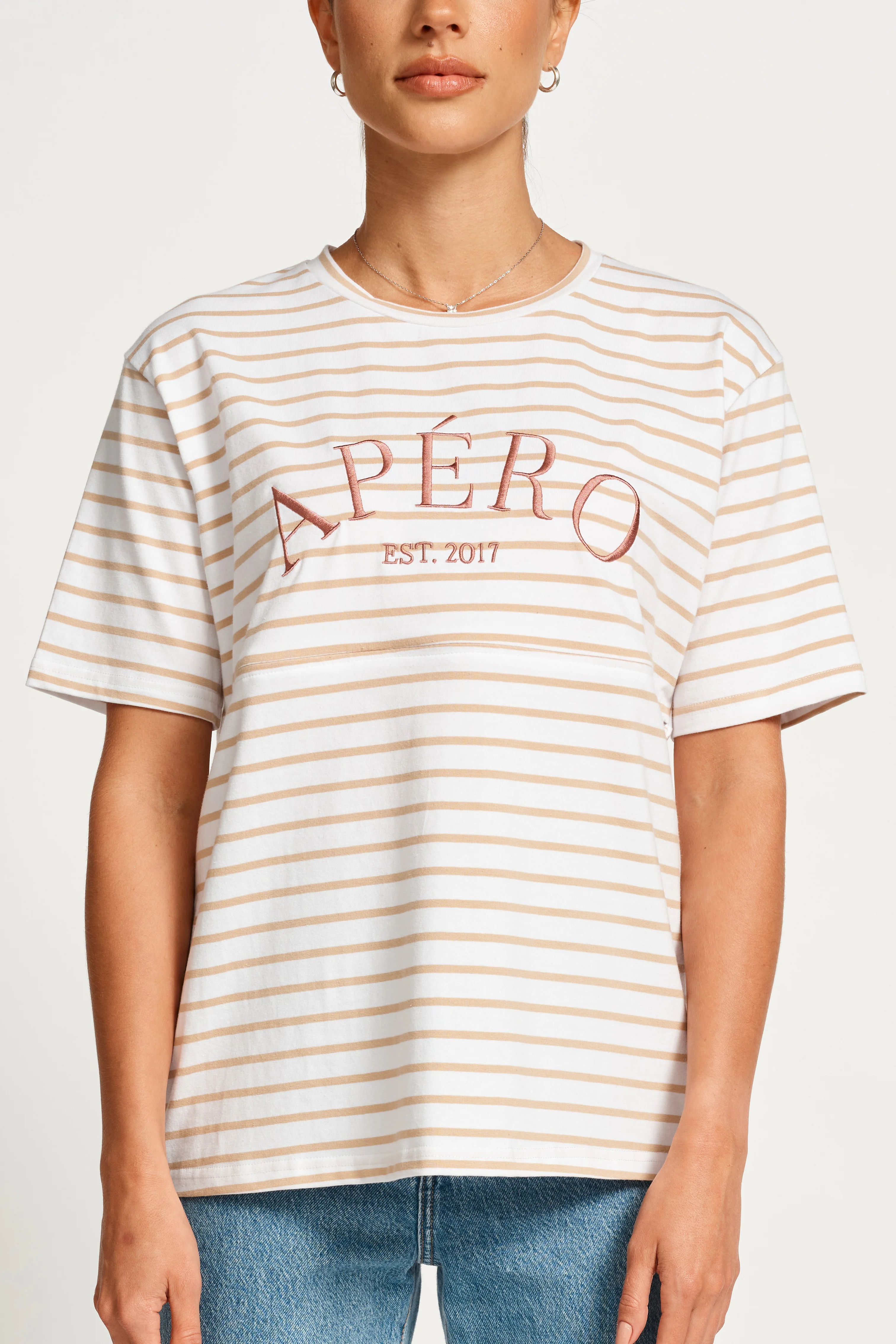 The Heritage Stripe Panel Tee is a must-have wardrobe staple that elevates your look even on your most care-free days.