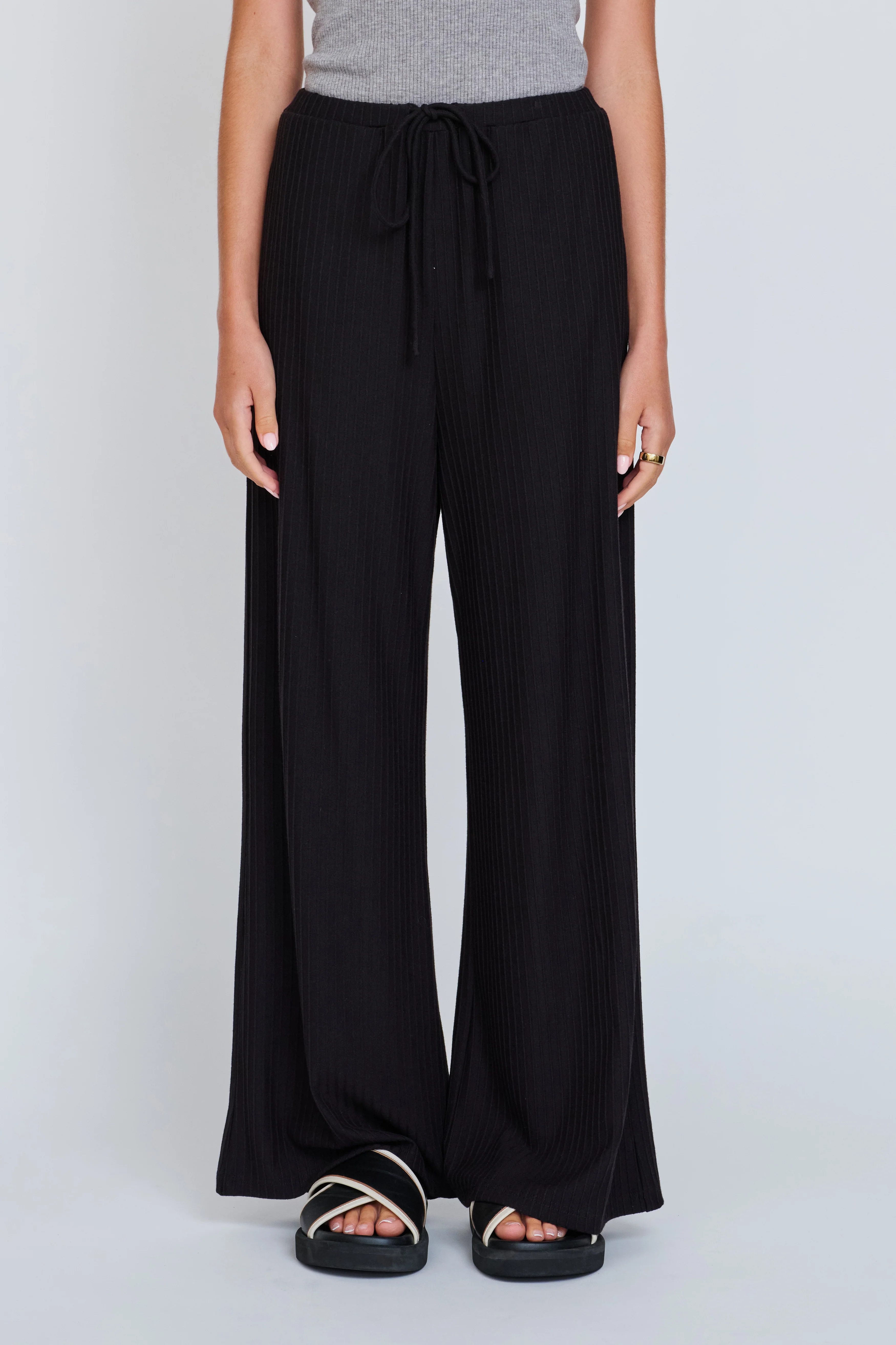 Ivy Ribbed Wide Leg Pant - Black