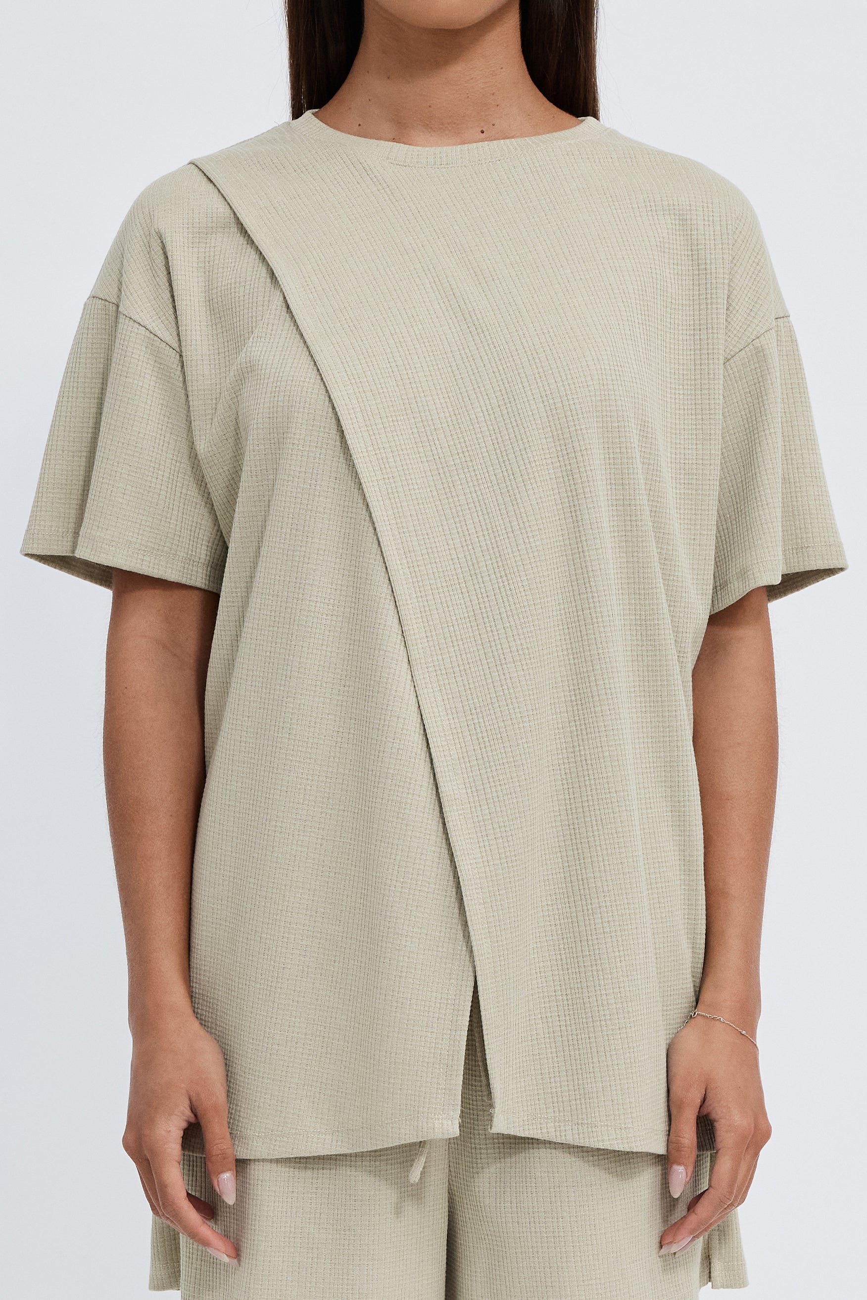 Ivy Waffle Longline Wrap Tee - Sage