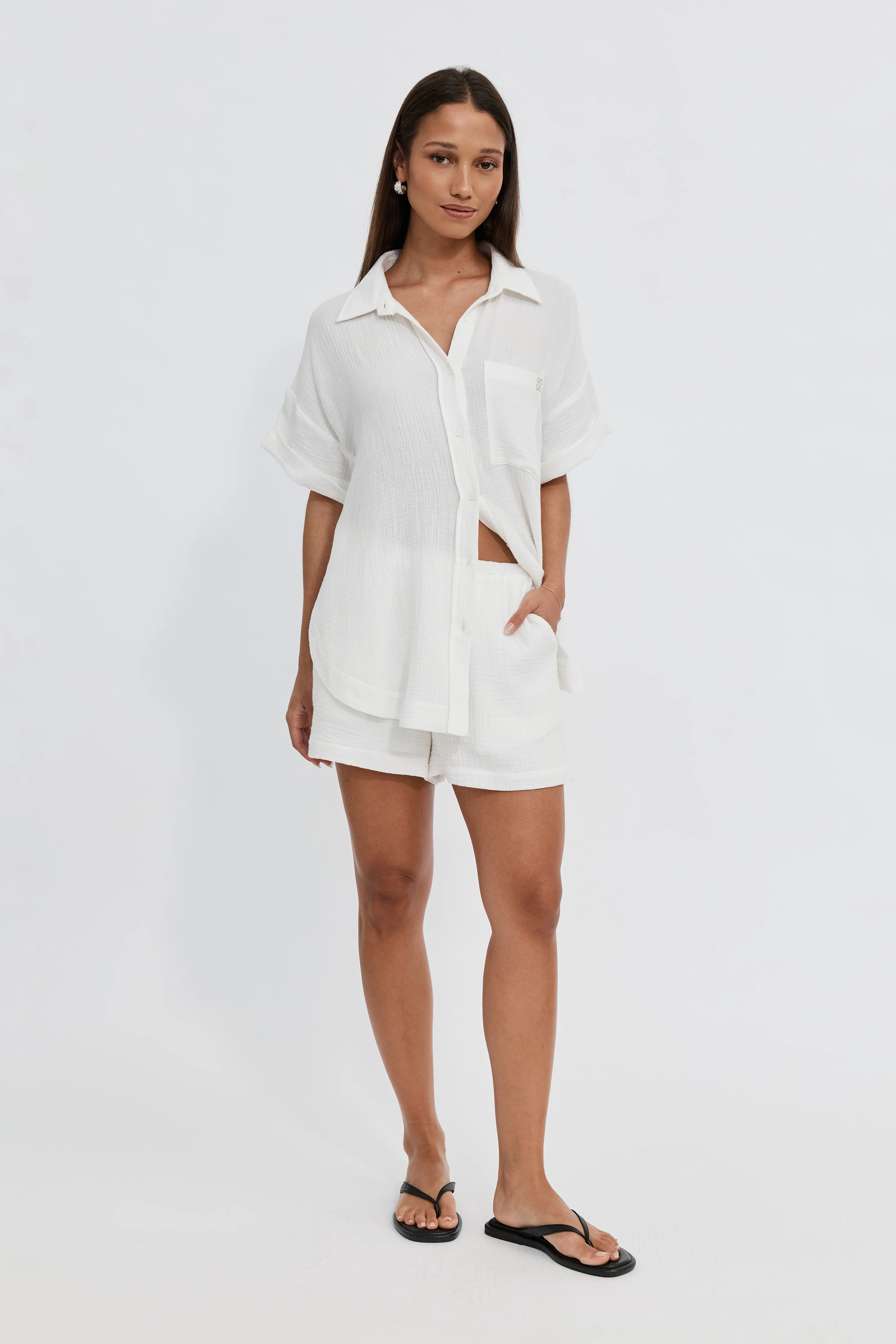 Perfect paired with the matching shorts, styled with a skirt, or thrown over swimwear, itās an elevated yet effortless everyday shirt youāll find yourself reaching for again and again.