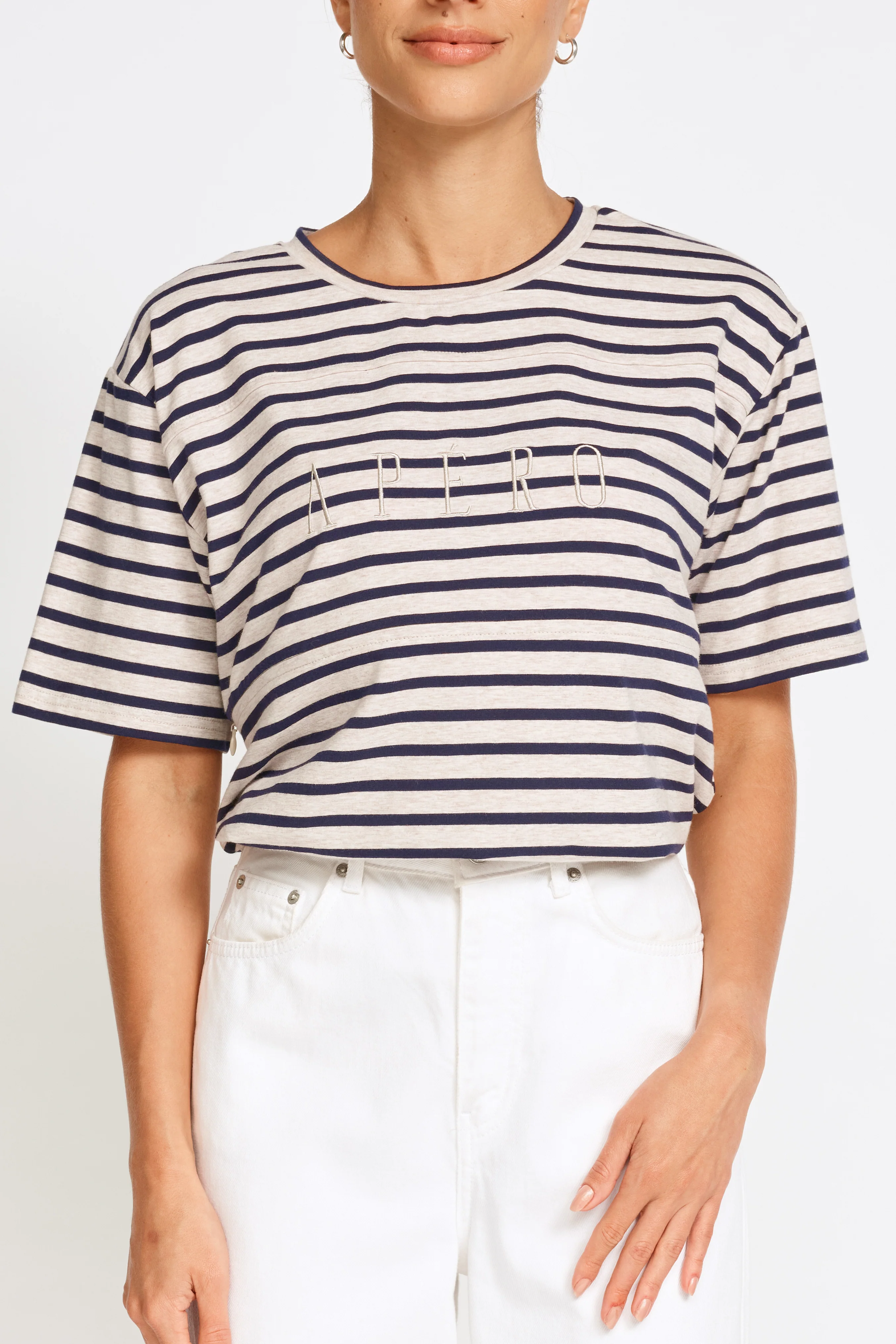 Riviera Stripe Panel Tee - Navy / Beige Marle